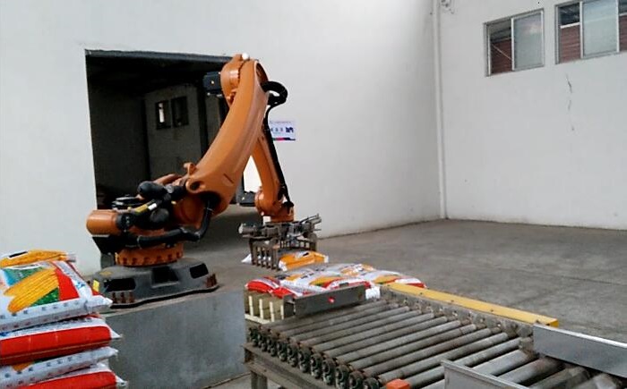 機(jī)械手碼垛機(jī)可對(duì)各種包裝袋、包裝箱進(jìn)行碼垛,具有堆垛速度快、自動(dòng)化水平高的特點(diǎn);碼放時(shí)全自動(dòng)分層編組,自動(dòng)化程度高;機(jī)械手碼垛機(jī)模塊化設(shè)計(jì),設(shè)備的穩(wěn)定性高,對(duì)托盤的適應(yīng)能力強(qiáng),只需在觸摸屏上作修改,不影響正常生產(chǎn);機(jī)器人本體由質(zhì)量輕、硬度高的高質(zhì)航空合金鋁制作,運(yùn)行能耗低。